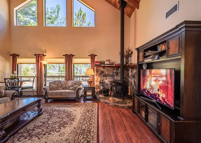 Les clients séjournant dans le logement Mountain View Playhouse Near Yosemite & Bass Lake peuvent se détendre dans un patio et un vestiaire et bénéficier de conforts tels qu'une climatisation, ainsi qu'une TV par câble avec des films à la demande et une TV avec chaînes satellitaires. Outre d'un canapé et d'un bureau, l'intérieur dispose d'une cheminée en pierre. Dotée d'une douche à l'italienne, de toilettes séparées et d'une baignoire, la salle de bains est également équipée d'un sèche-cheveux et des draps de bain.